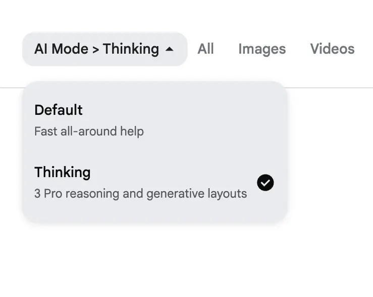 این شیوه نامگذاری در حالت هوش مصنوعی نیز بازتاب یافته است: «پیشفرض: کمک سریع همهجانبه» یا «تفکر: استدلال 3 Pro و طرحهای مولد». Gemini 3 Pro دیروز برای مشترکین AI Pro و AI Ultra در ایالات متحده منتشر شد.