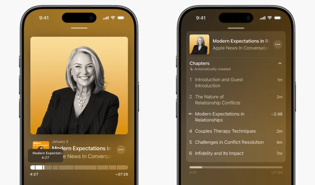 اولین تغییر این است که اپل برای نخستین بار، بخش‌های هر اپیزود پادکست را به‌صورت خودکار ایجاد می‌کند.