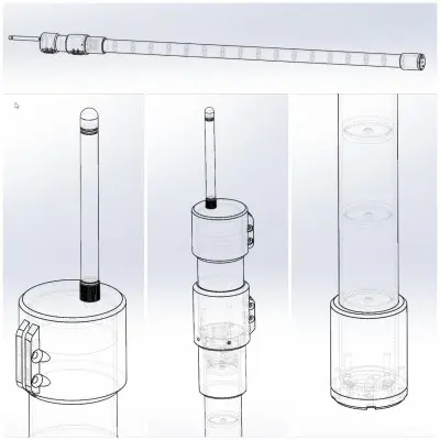 LoRa راهحل فوقالعادهای برای ارتباطات بیسیم برد طولانی و مصرف کم انرژی است (و با توجه به تعداد پروژههای مبتنی بر آن، بسیار محبوب است)؛ LoRaTube یک تقویتکننده خودکار را فراهم میکند که کاملاً درون یک لوله PVC قرار دارد. در بالای لوله آنتن نصب میشود و داخل آن تمام سختافزارهای ضروری به همراه انبوهی از سلولهای قلیایی اندازه D قرار گرفتهاند که منبع تغذیه با بافر سوپرکاپ طراحیشده توسط خود او را تأمین میکند. این دستگاه ضدآب، ارزانقیمت، خودکفا است و بهدلیل مصرف بسیار پایین در حالت انتظار، طبق برآوردهای [Bertrand] میتواند حدود پنج سال دوام داشته باشد.