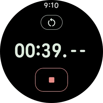 اکنون، پایین آوردن دست یا رفتن به حالت خاموشی صفحه هنگامی که زمان‌سنج فعال است، اجازه می‌دهد برنامه را بدون قطع ادامه دهید. حالت همیشه‌روشن (AOD) حلقهٔ شمارش معکوس دایره‌ای را حذف می‌کند. تمام دکمه‌ها (شروع مجدد، پایان و مکث) حالا با حاشیهٔ نازک نمایش داده می‌شوند و دیگر پر نیستند؛ ثانیه‌ها نیز به صورت خط‌های کوتاه نشان داده می‌شوند.