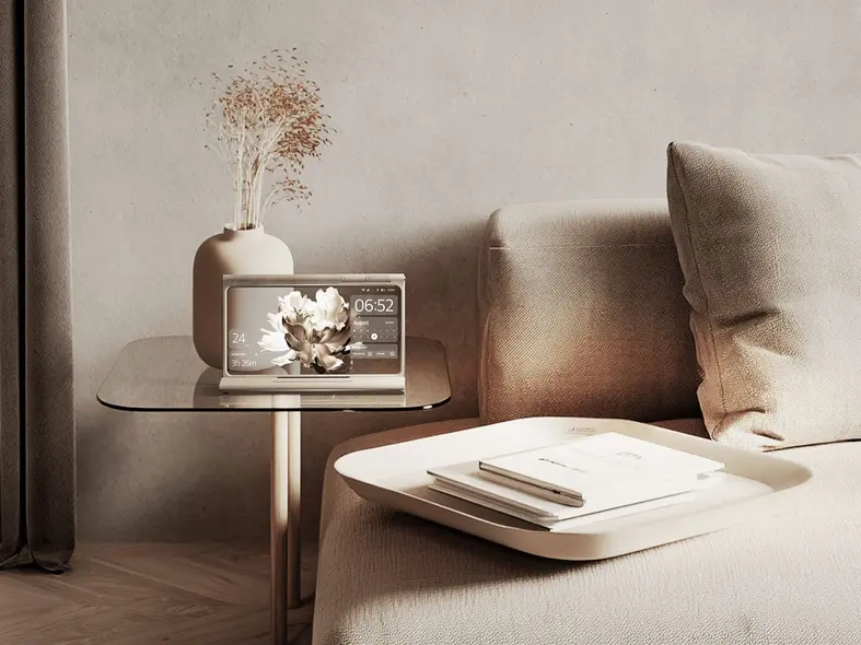 این دستگاه مستقل برای راحتی طراحی شده است، چه در حین سفر برای کار از راه دور از آن استفاده کنید و چه برای مصرف محتوای چندرسانه‌ای. یک پایه دارد که بلندگوهای فضایی سه‌بعدی و ترک‌پد را ترکیب می‌کند تا پخش محتوا در حالت چندرسانه‌ای بدون لمس صفحه قابل کنترل باشد. این پایهٔ مقاوم دارای دو مفصل آزاد است که به‌صورت روان قابل تنظیم برای به‌دست آوردن بهترین زاویهٔ مشاهده می‌باشد. نسبت تصویر ۱۶:۹ صفحه برای مشاهده در حالت پرتره ایده‌آل است اگر بخواهید آن را به‌جای گوشی هوشمند به‌عنوان تبلت استفاده کنید.