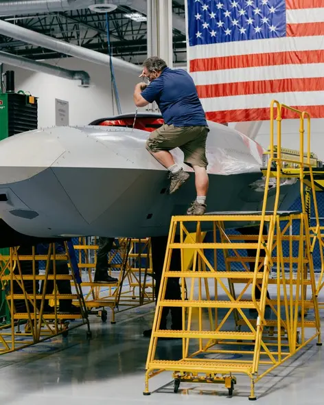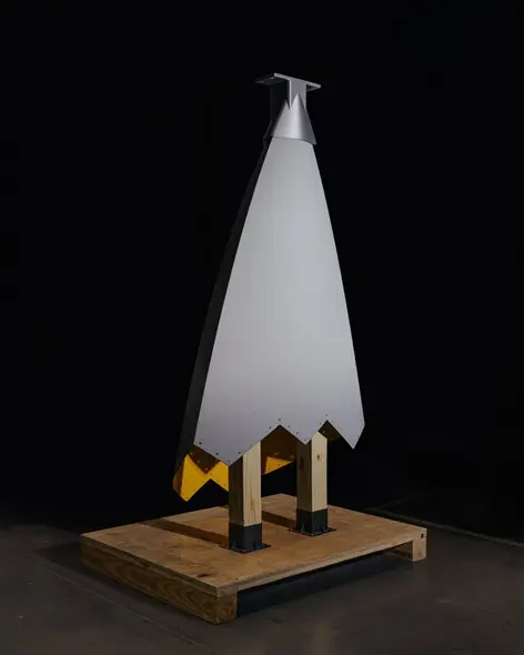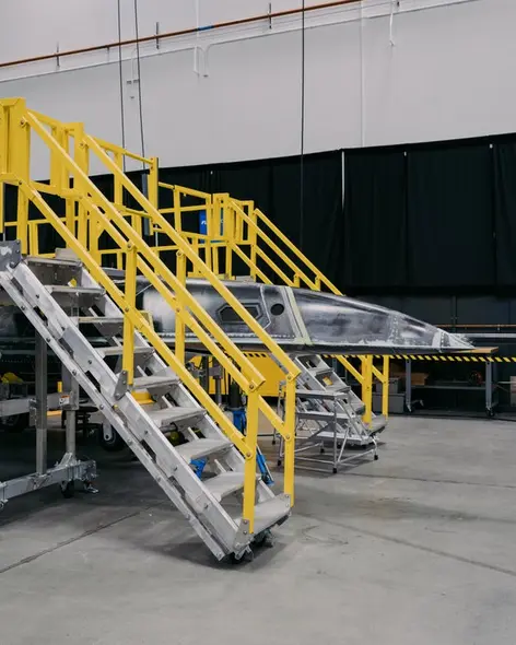 سرپوش و یک پهپاد خودمختار Fury که بهطور جزئی مونتاژ شده در مرکز گستردهٔ Anduril در کوستامسا، کالیفرنیا.